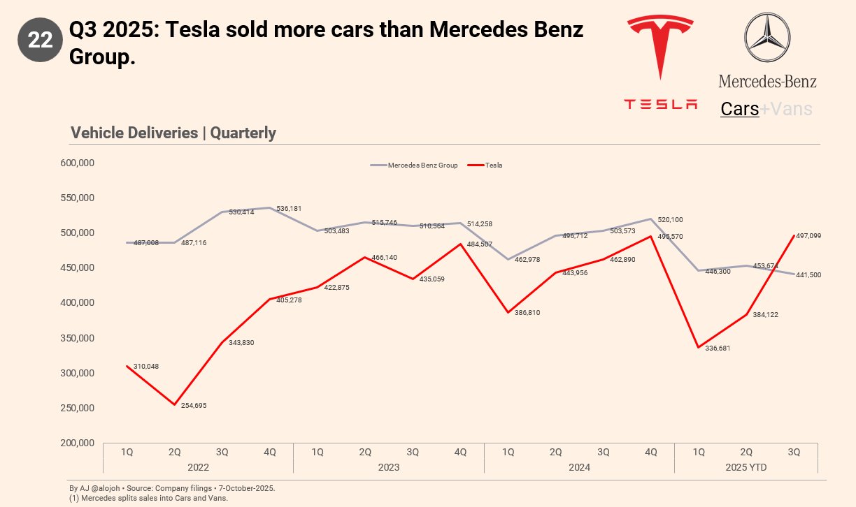 News: Tesla outsells Mercedes Benz Group for the first time!